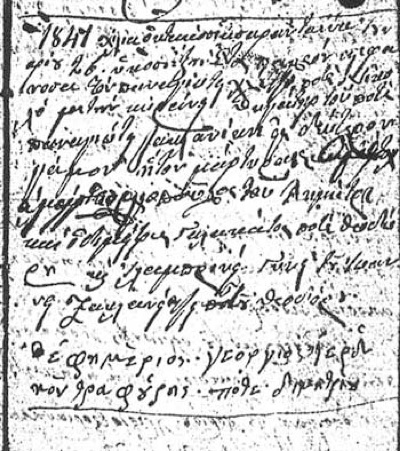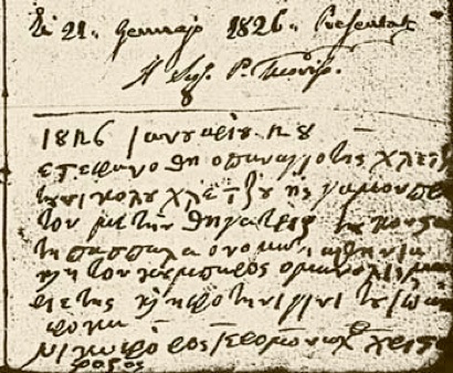 Panayiotis Nicolaos Chlentzos was born on April 1, 1799. He married two times. His first marriage was to the Athinia Paspalas, daughter of Costantis Paspalas. Their wedding certificate below indicates they married on January 28, 1826. They had six daughters; Maria, Eleni, Andriana, Diamanta, Stamatiki, and Charito. Poor Athinia passed away on September 19, 1940, leaving Panagiotis to raise all the children.